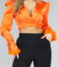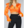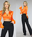 Dieses wunderschöne orangefarbene Satin-Wickeltop ist perfekt für einen Abend oder einen besonderen Anlass. Aus hochwertigem Satinstoff gefertigt, hat das Oberteil einen schönen Glanz und einen luxuriösen Look. Das Top hat ein Wickeldesign mit V-Ausschnitt und kann am Rücken gebunden werden, um einen eleganten und femininen Look zu erzielen. Das Oberteil ist mit wunderschönen orangefarbenen Federn an den Ärmeln verziert, die ein einzigartiges und auffälliges Detail darstellen. Die Ärmel sind lang und haben eine leicht bauschige Form für zusätzliche Eleganz. Dieses Oberteil kann mit hochtaillierten Hosen oder Röcken kombiniert werden, um ein komplettes Outfit zu erhalten. Dieses Produkt ist ideal für Frauen, die ein stilvolles und auffälliges Oberteil für einen besonderen Anlass suchen.