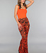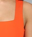 Dieses elastische Oberteil hat einen quadratischen Ausschnitt und breite Schulterträger. Da das Oberteil elastisch ist, sitzt es gut. Innen ist das Oberteil doppelt gefüttert, damit es nicht durchscheint. Es ist orangefarben und passt daher gut zum Königstag!
