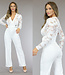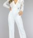 Hübscher weißer Jumpsuit mit Spitze und Taillengürtel