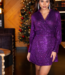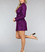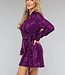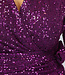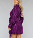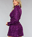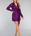 Dieses schöne Kleid ist ein echter Hingucker, denn es ist mit Pailletten besetzt. Das Kleid hat lange Ärmel und einen hübschen V-Ausschnitt mit einem Schleifendetail an der Seite. Der Boden des Kleides hat einen kleinen Schlitz durch die Überlappung. Man kann den Volant zweimal um die Taille wickeln, um dem Kleid eine schöne Taille zu geben, oder man kann das Kleid einfach ohne zusätzliche Wickelung binden, so dass es schön locker fällt. Im Inneren des Kleides befinden sich außerdem zwei Träger, damit das Kleid auf keinen Fall verrutschen kann.