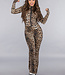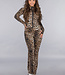 Leopard-Stretch-Zweiteiler mit Weste und Flair-Hose