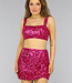 Dieses zweiteilige Set besteht aus wunderschönen, glänzenden Pailletten. Das Set besteht aus einem Rock und einem Crop Top. Das Crop-Top hat breite Spaghetti-Träger und einen Reißverschluss auf der Rückseite. Der Rock ist kurz geschnitten und hat ebenfalls einen Reißverschluss auf der Rückseite. Das Set hat ein weiches Innenfutter, so dass du die Pailletten nicht spürst. Dieses schimmernde Set lässt Sie auf einer Party oder bei besonderen Anlässen glänzen!