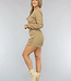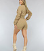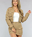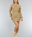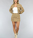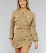 Dieser Zweiteiler besteht aus einem taillierten Bomber und einem kurzen Skort. Der Bomber hat süße Plissee-Details an den Ärmeln und die Ärmelenden haben Verbindungsbündchen. Auf der Brust hat der Bomber zwei Brusttaschen. Er hat einen runden Kragen und einen Reißverschluss. Der Skort hat einen Einsatz am Boden und zwei Cargotaschen. Der elastische Bund ermöglicht ein einfaches An- und Ausziehen.