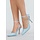 Diese hellblauen Pumps haben eine spitz zulaufende Spitze und einen hohen, schmalen Absatz. Das Modell hat einen verstellbaren Knöchelriemen mit feinem Verschluss. Der Absatz ist offen, das Obermaterial ist schlicht und glatt.