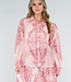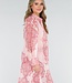 Diese Bluse ist aus einem hellrosa, halbtransparenten Stoff mit einem dunkelrosa Paisley-Print gefertigt. Das Modell hat lange Ärmel mit Manschetten und einen klassischen Kragen. Auf der Vorderseite verläuft eine Knopfleiste über die gesamte Länge. Die Bluse wird mit einem passenden Unterhemd geliefert.