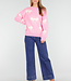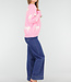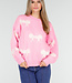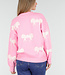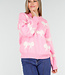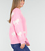 Dieser rosa Pullover ist aus Strickstoff gefertigt und hat einen Rundhalsausschnitt mit Rippbündchen. Das Modell hat lange Ärmel und gerippte Bündchen an den Handgelenken und am Saum. Auf dem Pullover sind weiße Schleifenmotive aufgebracht, die dem Stoff zusätzliche Struktur verleihen. Die Passform ist gerade und fällt locker bis zur Hüfte.
