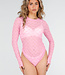 Rosa Mesh-Body mit langen Ärmeln und Stretch