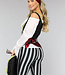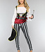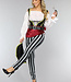 Dieses Piratenkostüm besteht aus 7 Einzelteilen. Es ist also mega-expansiv und auch von super Qualität! Die lange Hose hat eine hohe Taille und ist gestreift. Sie hat eine gute Passform und ist oben mit einem elastischen Bund versehen. Das Oberteil kann schulterfrei oder mit einem normalen Ausschnitt getragen werden. Es ist in Falten gelegt und hat lange Ärmel. Diese Ärmel haben am Ende eine abgeschnittene Form. Über dem Oberteil befindet sich ein luxuriöses Gilet. Dieses Gilet hat einen Spitzenüberzug und goldene Paspeln. Auf der Vorderseite befindet sich eine Schnürung, die gleichzeitig als Verschluss dient. Binden Sie eine Samtschärpe um Ihre Taille und tragen Sie den robusten Gürtel in Lackoptik mit Schnallenverschluss darüber. Binden Sie sich das Stirnband um den Kopf. Du kannst den Hut auch darüber ziehen. Das Set wird mit einem Schwert geliefert!