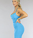 Dieses sexy Kleid hat einen Bodycon-Schnitt, der es gut sitzen lässt. Das Kleid hat ein Netz über Stoff, der eine schöne plissierte Detail gibt. Das Netz über Stoff ist an der Brust an der Spitze drapiert. Das Kleid hat auch ein Unterkleid, das eine schöne Spitze an der Spitze bildet. Das Kleid hat doppelte Spaghetti-Träger. Die beiden äußeren Spaghettiträger sind am Kleid befestigt, und die beiden inneren kann man am Hals zusammenbinden, um einen lustigen Effekt zu erzielen.