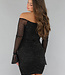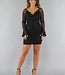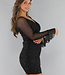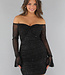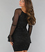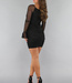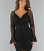 Dieses super dehnbare Kleid hat lange durchsichtige Flair-Ärmel. In der Tat ist das Kleid aus einer Art von Mesh-Stoff und hat ein doppeltes Futter am Mieder, so dass es nicht durchscheinen. Das Kleid hat einen V-Ausschnitt mit einem schönen Twist-Detail darunter. Außerdem ist das Kleid schön plissiert und großzügig mit Glitzer verziert. Das Kleid hat außerdem einen Reißverschluss am Rücken.