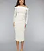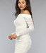 Dieses wunderbare Kleid ist aus einem Mesh-Stoff gefertigt und fällt drapiert um den Körper. Das Kleid ist doppelt gefüttert, damit es nicht durchscheint. Außerdem hat es lange, durchsichtige Faltenärmel. Außerdem ist das Kleid schulterfrei geschnitten und hat einen hohen Stretchanteil.