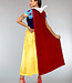 Dieses wunderschöne Prinzessinnenkostüm ist aus einem Samtstoff gefertigt. Das Kleid ist sehr dehnbar. Das Oberteil des Kleides hat süße Puffärmel. Am Halsausschnitt ist ein großer roter Umhang angebracht. Das Oberteil hat einen gelben Streifen, der quer über den Bauch verläuft, wie bei Schneewittchens echtem Prinzessinnenkleid. Der Rock ist wunderschön schimmernd und gelb gefärbt. Außerdem hat das Kleid einen Reißverschluss an der Seite des Kleides.