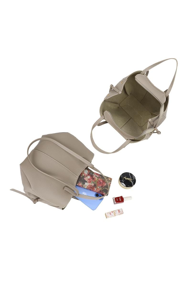 Diese beige Handtasche ist aus feinem Kunstleder gefertigt und verfügt sowohl über kurze Griffe als auch über extra lange Schulterriemen. Die Tasche hat ein geräumiges Hauptfach, das mit einem magnetischen Druckknopf verschließbar ist. Innen ist die Tasche vollständig gefüttert und mit verstärkten Nähten versehen. Darüber hinaus wird diese Handtasche mit einer passenden zusätzlichen Tasche geliefert, die sich ideal für die sichere Aufbewahrung kleiner Gegenstände wie Schlüssel, Karten oder Make-up eignet. Mit einem Gewicht von nur 0,65 kg und Abmessungen von 34 cm Höhe, 25 cm Breite, 18 cm Tiefe und einem Boden von 10 cm ist dieses Modell leicht, praktisch und dennoch geräumig. Sehen Sie sich hier weitere Taschen an.