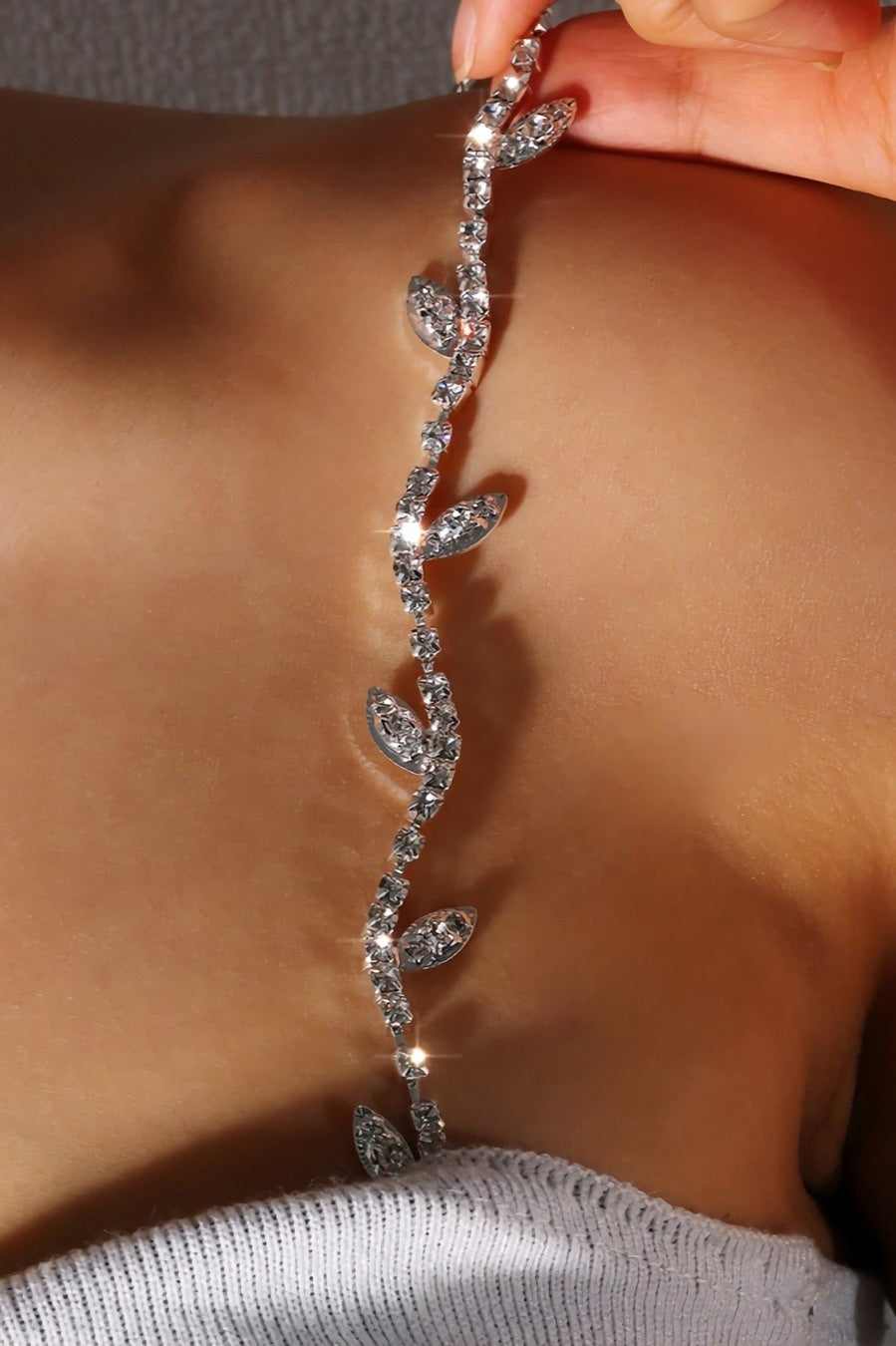 Dieses zierliche Band ist perfekt für besondere Anlässe! Wenn Sie z.B. ein trägerloses oder schulterfreies Outfit tragen, können Sie dieses Band verwenden, um zusätzlichen Halt zu bieten und gleichzeitig ein wenig mehr Glanz zu verleihen. Das Band verfügt über einen Schiebehaken, mit dem es am BH befestigt wird, und einen zusätzlichen Hakenverschluss, um das Band zu verstellen.