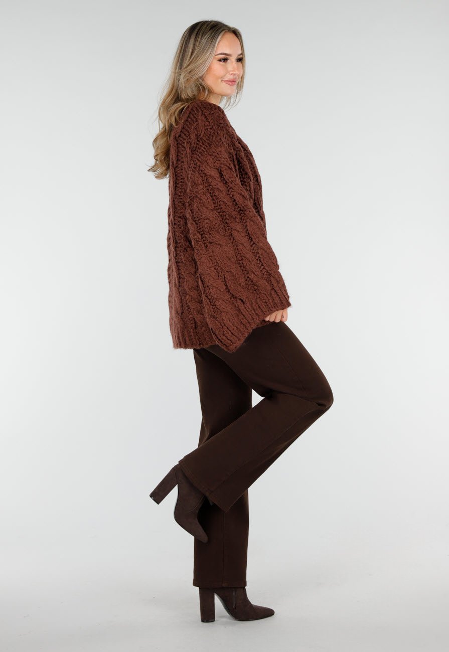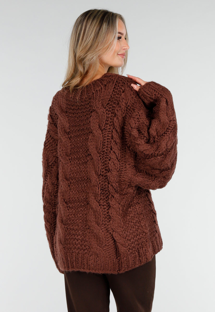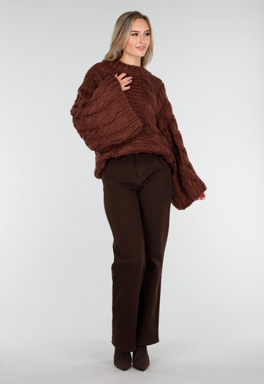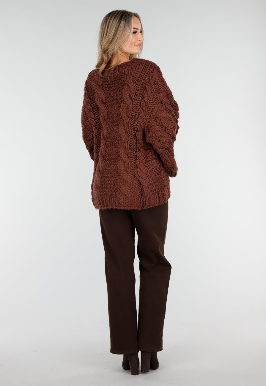 NEW240925 Bruine Trui met Kabelpatroon Größe OS (SML)