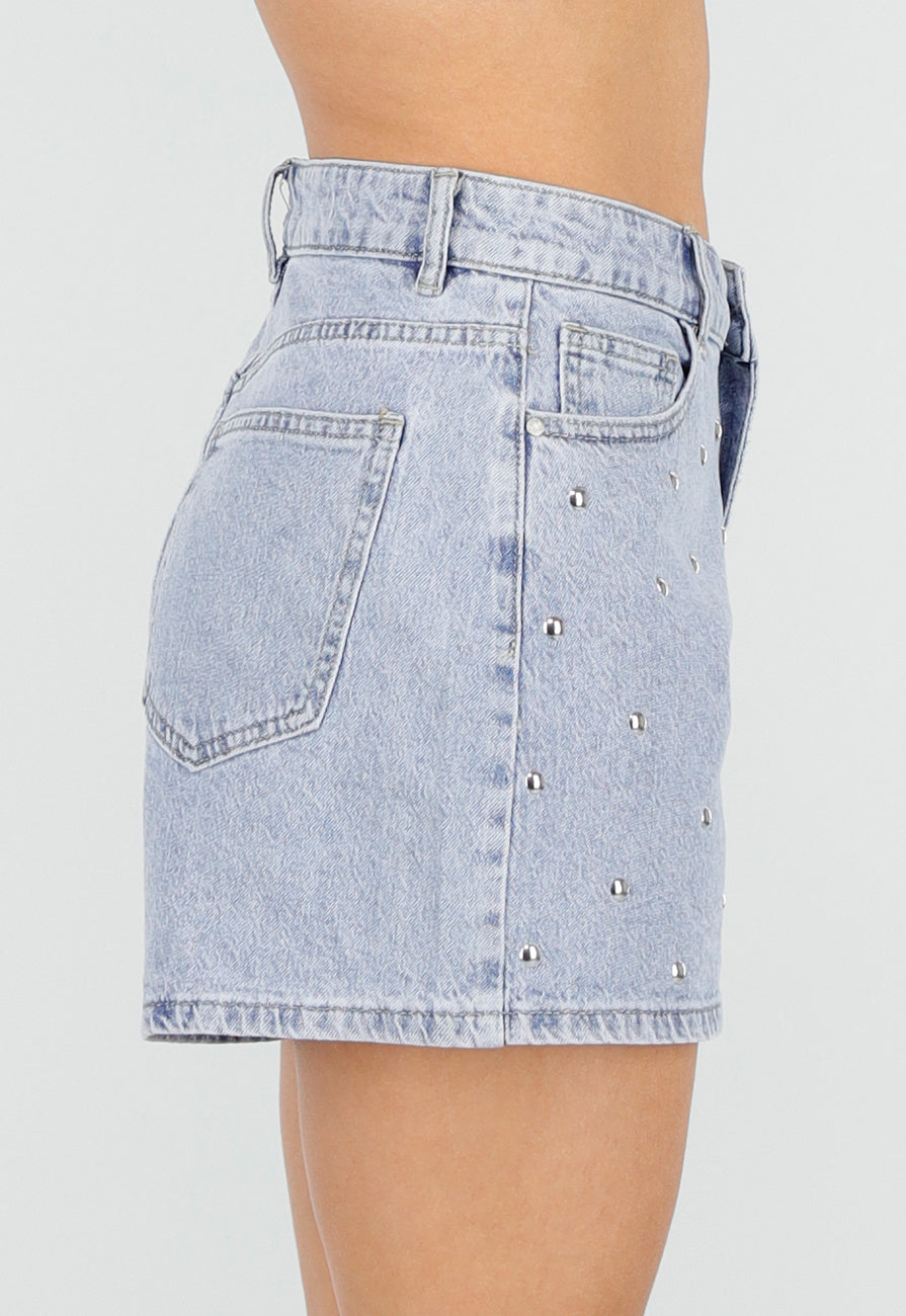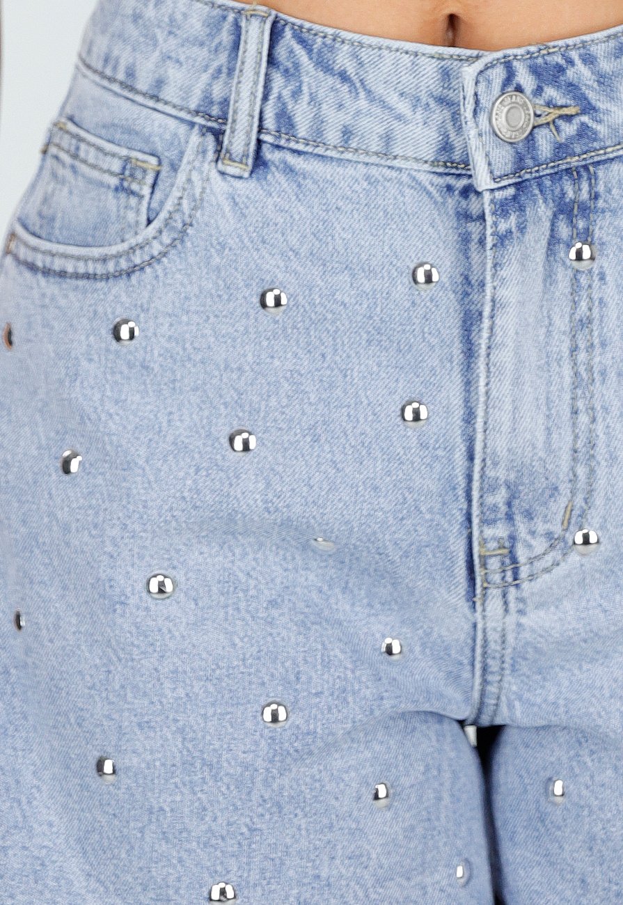 Hellblaue Jeansshorts mit Nieten