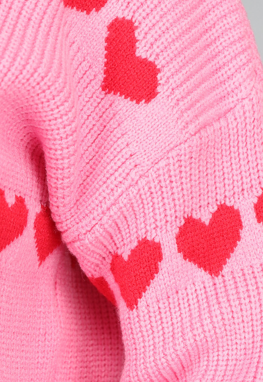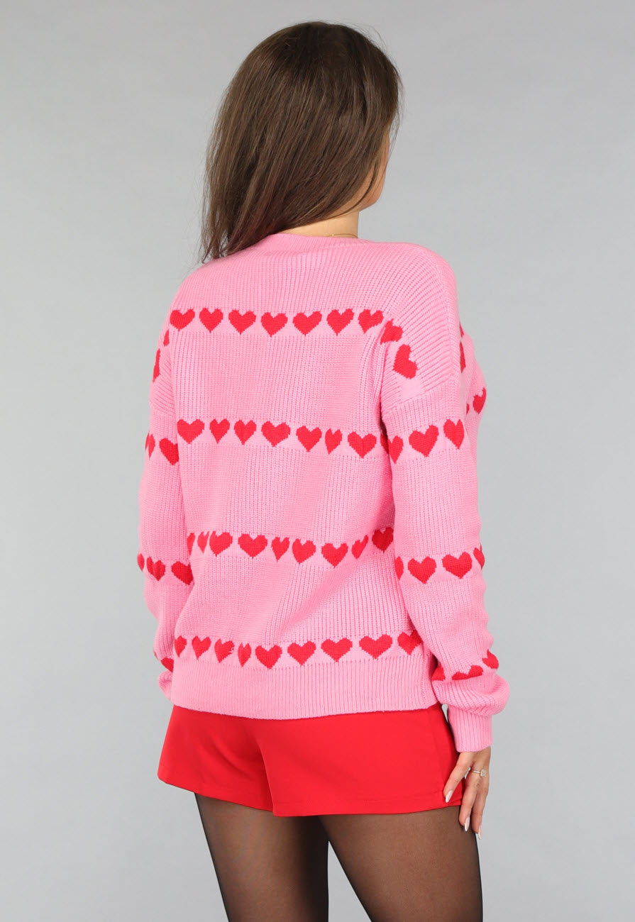 Hellrosa Strickpullover mit roten Herzen