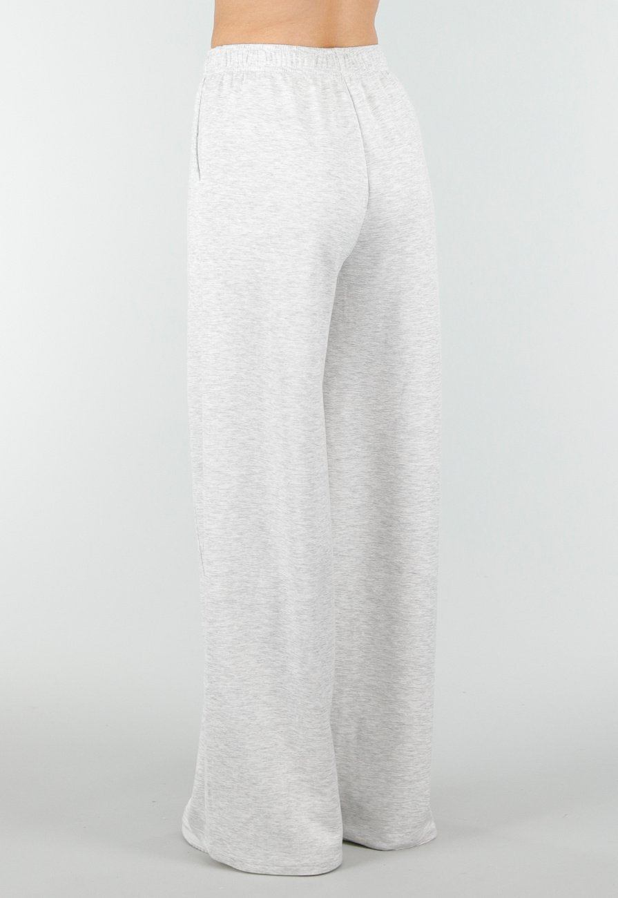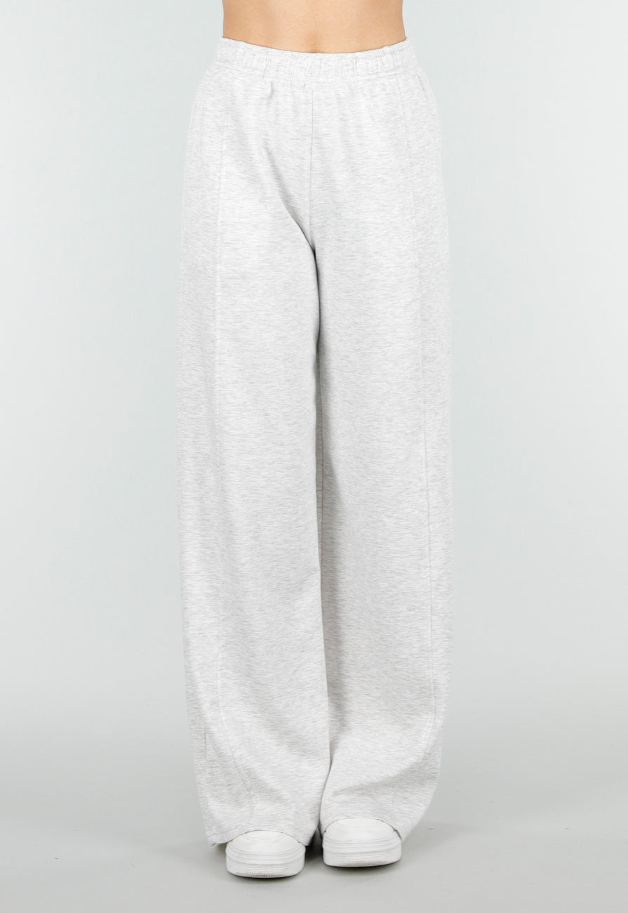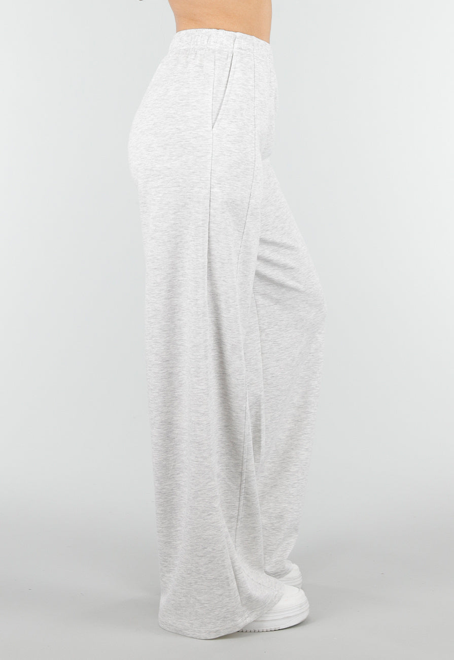 Grijze joggingbroek met wijde rechte pijpen en een elastische tailleband. De broek is gemaakt van een zachte stof met stretch en heeft een losse pasvorm. De broek is voorzien van zakken.