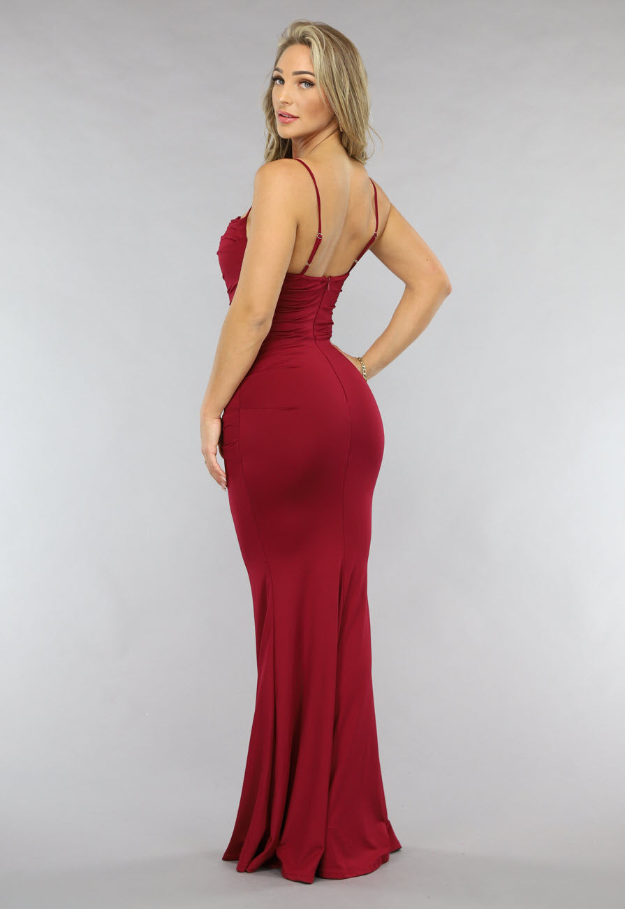 Langes plissiertes weinrotes Kleid