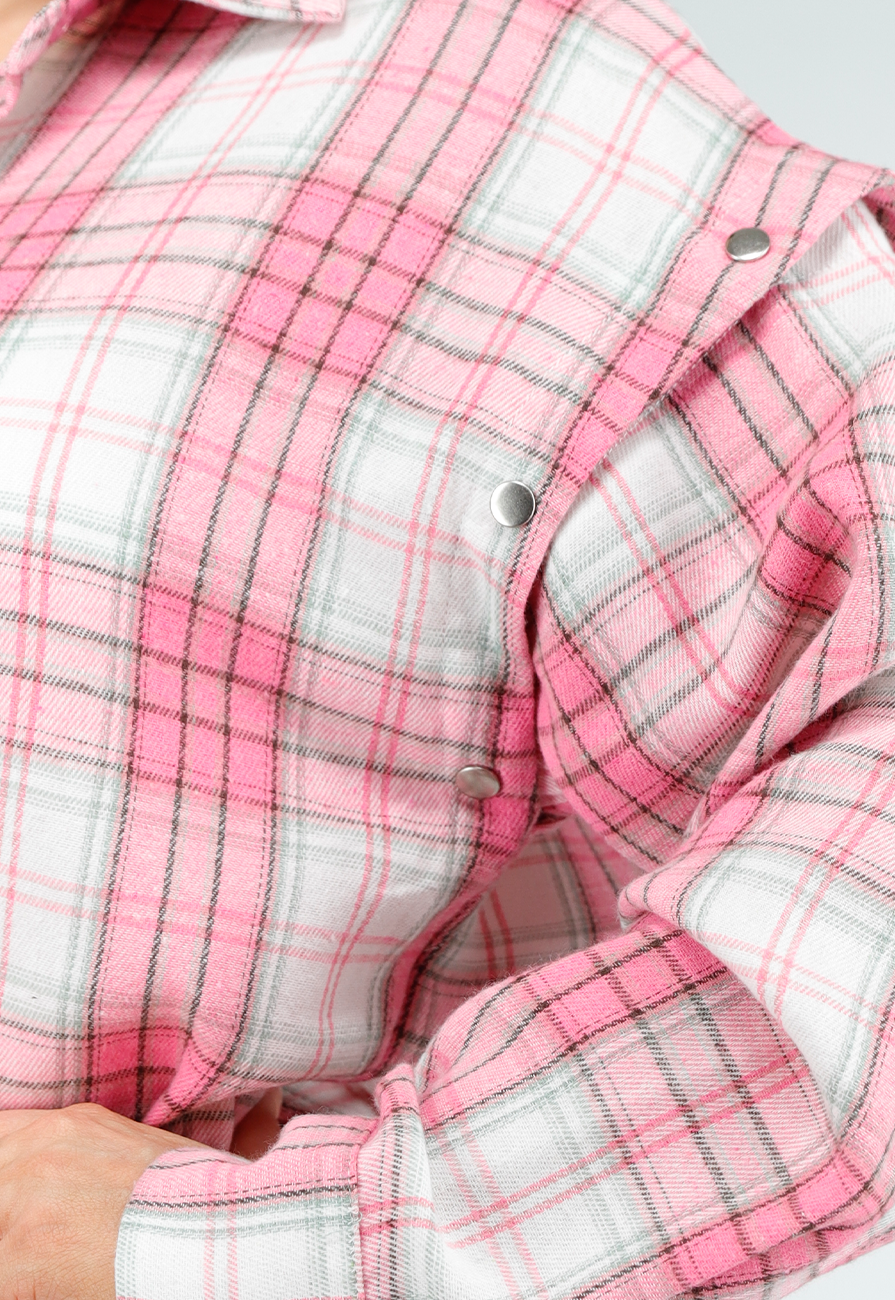 Rosa und weiß karierte Holzfällerbluse mit abnehmbaren Ärmeln