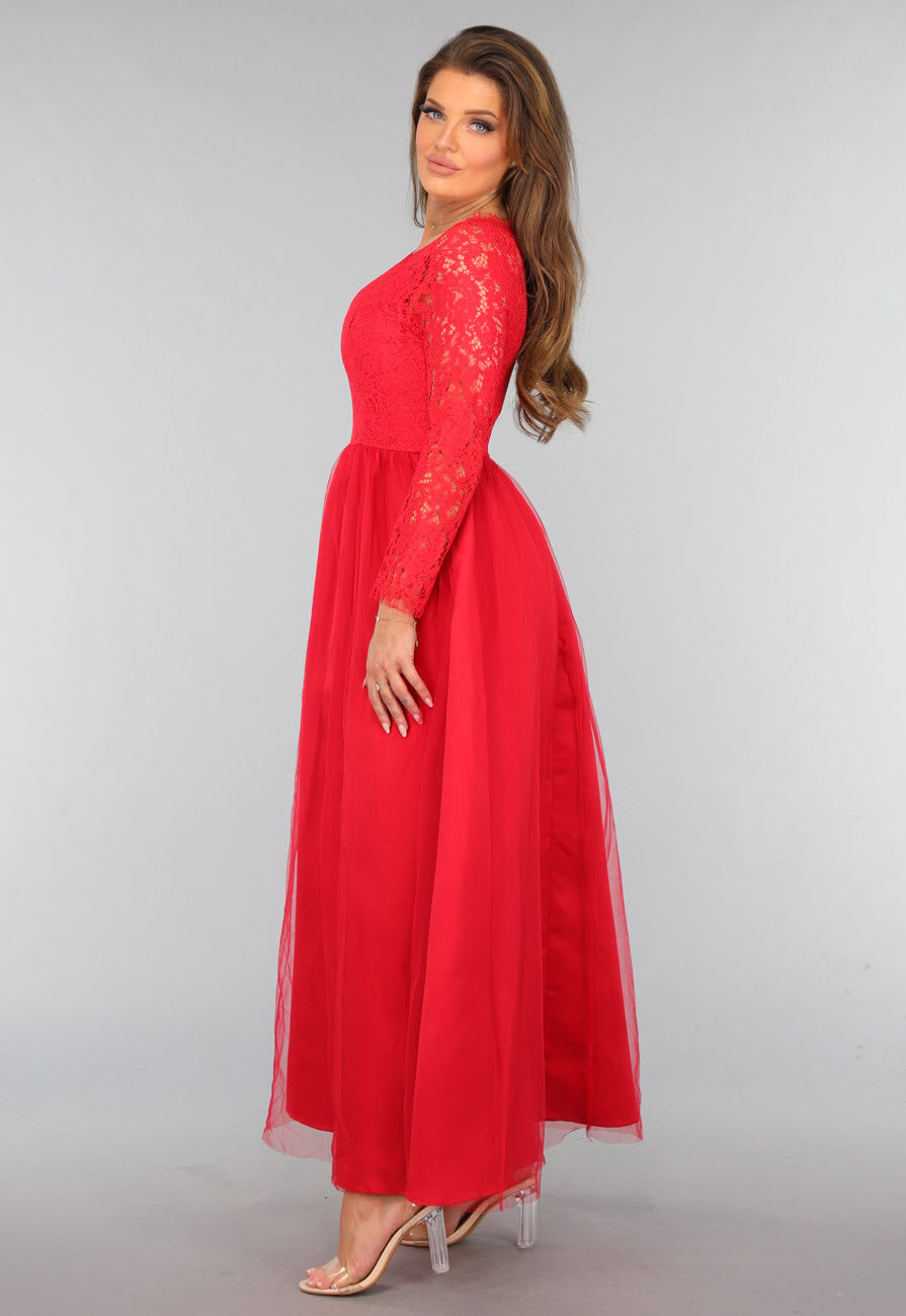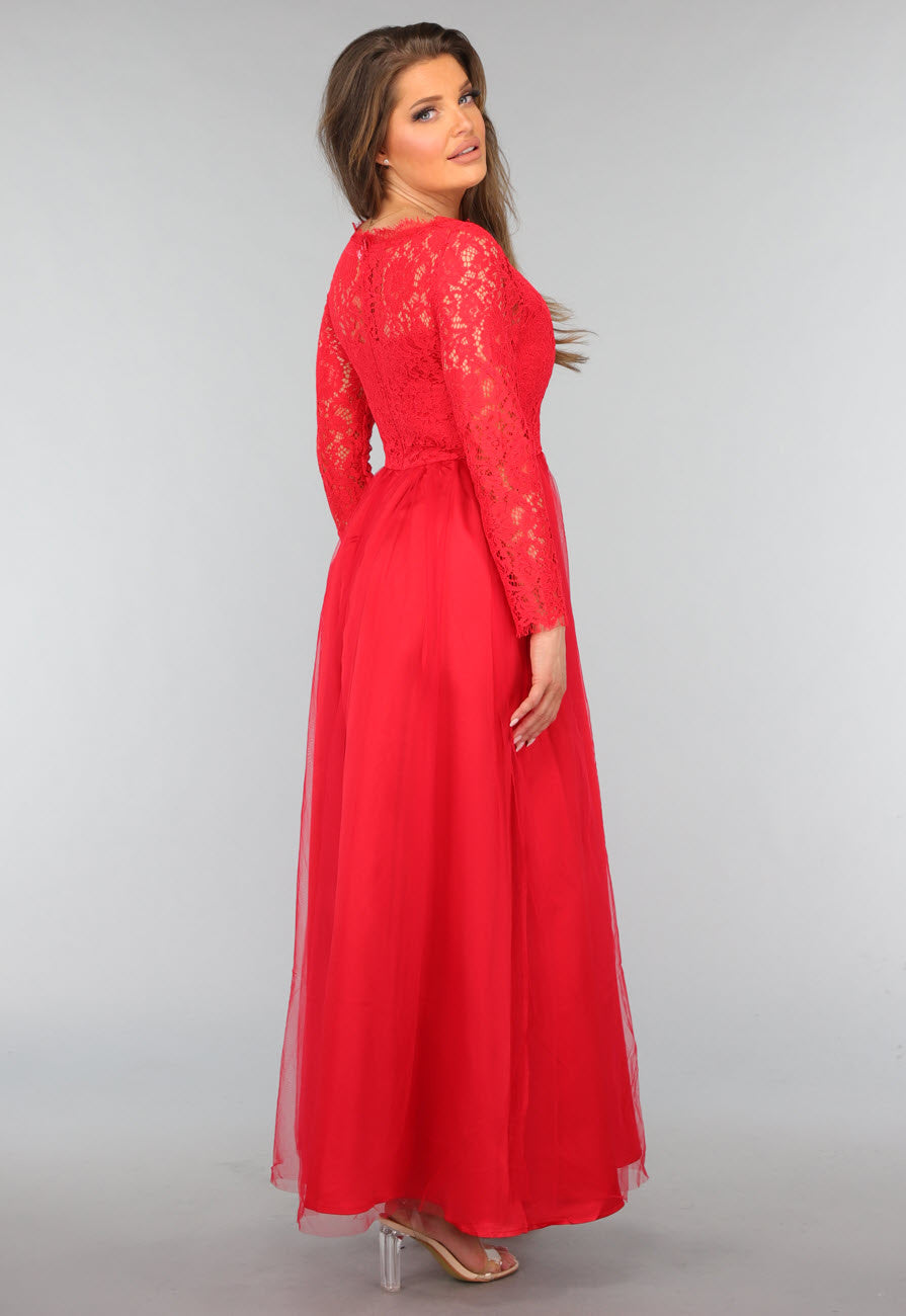 Rotes Tüllkleid mit Spitzenoberteil