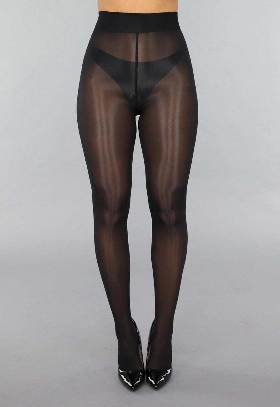 Diese schwarze Strumpfhose ist komplett aus einem dehnbaren Stoff gefertigt. Die Strumpfhose hat eine hohe Taille und wirkt am Bauch leicht korrigierend und am Gesäß straffend. Die Strumpfhosen sind einfarbig und schön glänzend und lassen sich gut kombinieren. Die Strumpfhosen sind 30 Denier Strumpfhosen. Diese schwarze Anti-Ladder-Strumpfhose hat eine hohe Elastizität und ein gleichmäßiges Aussehen. Sie hilft, Leitern zu verhindern, und ein Loch ist weniger wahrscheinlich, dass es zu einer Leiter führt.
