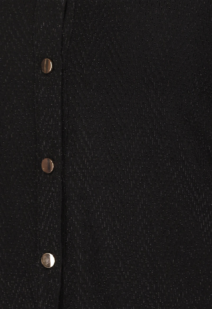 Schwarze Glitzerbluse mit goldenen Knöpfen
