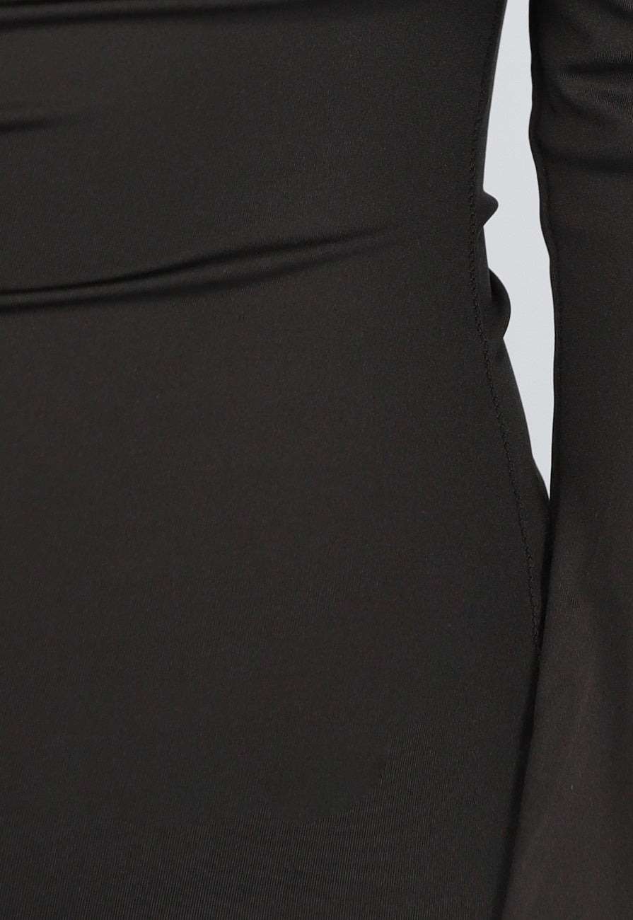 Schwarzes schulterfreies Kleid mit ausgestellten Ärmeln