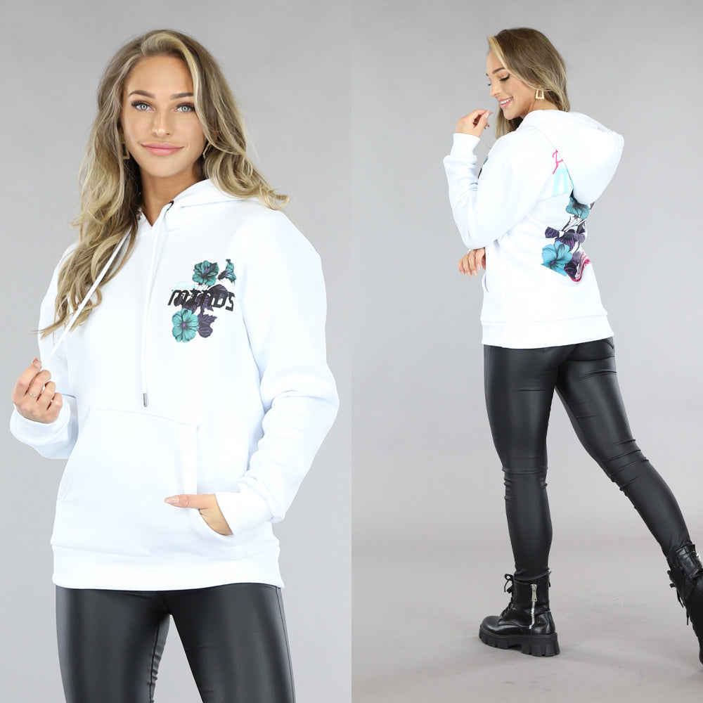 SALE50 Witte Oversized Bloemen Hoodie Größe S
