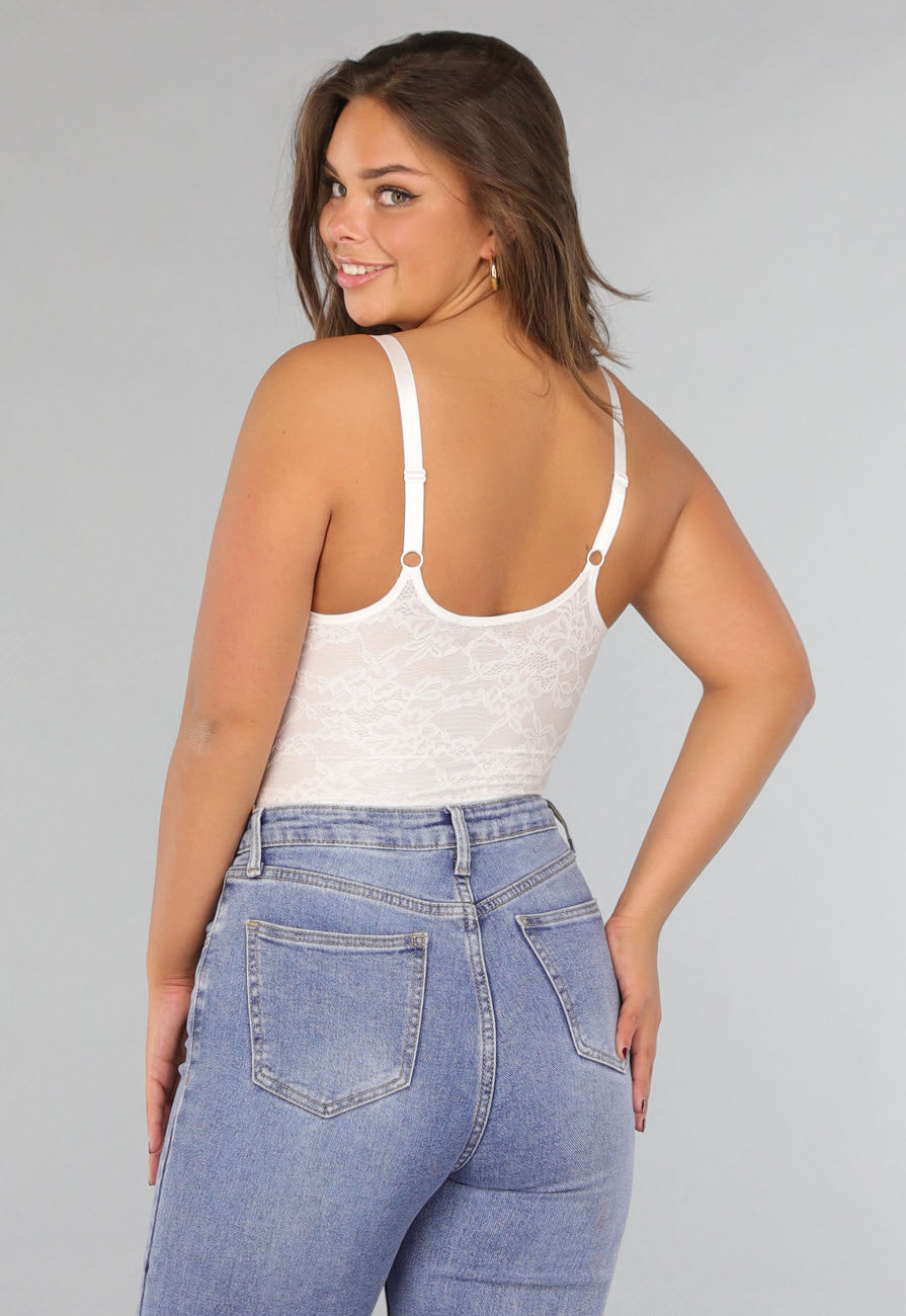 OP=OP.35.NL Witte Kanten Bodysuit met Compressie Größe S