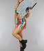 Dieser tolle Fächer ist perfekt für Indoor-Festivals! Das liegt daran, dass der Fächer grau aussieht, aber versuchen Sie, ein Blitzlichtfoto davon zu machen und Sie werden sehen, wie schön regenbogenholographisch reflektierend er ist! Der Fächer hat einen coolen Aufdruck, der bei Blitzlicht komplett aufleuchtet.