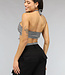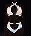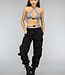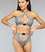 Dieser coole Zweiteiler ist aus einem robusten, reflektierenden Stoff gefertigt. Das Oberteil hat ein Neckholder-Modell, das Sie selbst am Hals binden können. Das Oberteil hat auch Cups. Der Boden ist kurz und hat einen Ausschnitt an der Spitze. Sowohl das Oberteil als auch das Unterteil haben ein cooles Schnallendetail. Dieses Set ist perfekt für Indoor-Festivals!