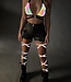 Dieser reflektierende Beingurt vervollständigt Ihr reflektierendes Outfit! Es ist sogar sehr einfach zu befestigen. Du ziehst es wie ein Strumpfband an und wickelst den Rest der Riemen um das Bein. Dann bindest du einen schönen Knoten hinein und fertig.
