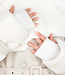 Diese gestrickten Handschuhe sind ohne Fingerspitzen, sodass die Finger frei bleiben. Das Modell hat eine gerippte Struktur und reicht bis über das Handgelenk hinaus, um zusätzliche Wärme zu bieten. Die Handschuhe sind komplett in Weiß gehalten und schmiegen sich dank des dehnbaren Strickmaterials sanft an die Hände an. Dank des offenen Fingermodells sind sie praktisch für den täglichen Gebrauch, da die Finger beweglich bleiben.
