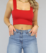 Dieses niedliche Crop-Top ist aus einem Stretch-Stoff gefertigt, so dass es sich bequem trägt. Es sitzt gut und fällt kurz. Das Oberteil hat feste, breite Schulterträger und einen quadratischen Ausschnitt.