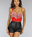 Dieses Bustier-Top ist auf der Vorderseite wunderschön mit Strassrüschen verziert. Das Oberteil hat verstellbare Spaghetti-Träger und am Rücken einen Hakenverschluss mit fünf Haken, die in vier Positionen eingestellt werden können. Die Cups des Bustiers sind vorgeformt und mit Push-up-Polstern versehen, die für einen guten Sitz sorgen. Außerdem ist es mit einem rutschfesten Besatz versehen, so dass es auch trägerlos getragen werden kann.