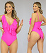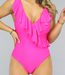 Rosa Badeanzug mit Rüschen und Schleifendetails