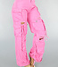 Diese coole pinke Cargo-Jeans mit Pattentaschen ist eine trendige Hose, die perfekt für einen lässigen und coolen Look ist. Die Hose hat einen Hosenschlitz mit Reißverschluss und Knopf, Vorder- und Gesäßtaschen und mehrere große Pattentaschen auf der Vorderseite und an den Seiten der Hosenbeine. Die Hose hat einen hohen Taillenschnitt und fällt baggy. Das sorgt für einen coolen und funktionellen Look.