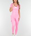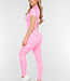 Dieses leuchtend rosafarbene Sportset kombiniert eine kurzärmelige Jacke mit Reißverschluss mit einer Leggings mit hoher Taille, die mit mehreren Cargotaschen und einem Knitter auf der Rückseite versehen ist. Das Set ist aus einem weichen Stretch-Stoff gefertigt und bietet eine bequeme Passform. Die abgesteppten Linien und Details verleihen ihm einen coolen Look und betonen perfekt Ihre Figur!