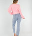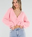 Dieser rosa Strickpullover ist aus einer weichen Wollmischung mit flauschiger Optik und angenehmem Stretch gefertigt. Das Modell hat einen tiefen V-Ausschnitt und eine verspielte Drehung auf der Vorderseite für einen femininen Look. Die langen Ärmel und die lockere Passform sorgen für einen bequemen Sitz. Der Pullover kann auch rückwärts getragen werden, wodurch ein stilvoller offener Rücken entsteht.
