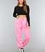 Diese Hose ist aus einem weichen Baumwollstoff mit Stretch gefertigt. Sie trägt sich sehr bequem und hat einen hohen Taillenschnitt. Die Jogginghose hat einen breiten Gummibund mit Schnürung und zwei Seitentaschen auf der Vorderseite. Die Beine haben am Ende einen elastischen Saum, so dass sie sich ein wenig aufblähen.