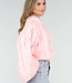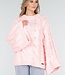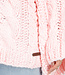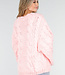 Dieser Pullover ist aus einem grob gestrickten Stoff in einem zarten Rosa gefertigt. Das Modell hat einen Rundhalsausschnitt und ein auffälliges Zopfmuster auf der Vorder- und Rückseite. Die langen Ärmel sind extra weit und fallen locker über die Arme. Der Pullover hat eine gerade Passform mit einem Rippstrickbund am Saum und an den Ärmelbündchen. Die Länge reicht bis zur Hüfte.