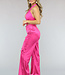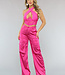 Diese rosa Hose ist ein echter Hingucker! Die Hose hat einen elastischen Bund, ist hoch tailliert und hat weite Beine. Die Hose hat ein weiches Satinmaterial und coole Cargotaschen an den Seiten der Hose. Die Hose hat einen hohen Stretchanteil. Diese coole Hose ist ideal für einen Festival-Look!