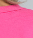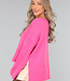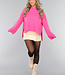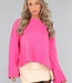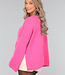 Der Pullover ist gestrickt und von weicher Qualität. Er hat lange, weite Ärmel und sichtbare Nähte. Außerdem hat der Pullover einen Rippstrick-Besatz am Halsausschnitt, an der Unterseite und am unteren Ende der Ärmel und zwei Schlitze an der Seite.