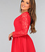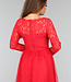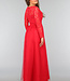Dieses wunderschöne Kleid ist perfekt für besondere Anlässe. Das Kleid ist lang und hat ein langärmeliges Spitzenmieder. Der Ausschnitt hat einen V-Ausschnitt mit Wellenkanten. Der Rock des Kleides ist aus Tüll, aber wegen des Unterrocks ist das Kleid nicht durchsichtig. Auf der Rückseite des Kleides befindet sich ein blinder Reißverschluss, der das An- und Ausziehen des Kleides erleichtert.