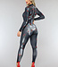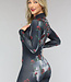 Dieser hübsche Jumpsuit ist aus dehnbarem Stoff gefertigt und hat viel Stretchanteil. Der Jumpsuit hat einen hohen Kragen und einen Reißverschluss auf der Rückseite. Außerdem hat der Jumpsuit lange Ärmel. Der Jumpsuit hat einen Skelettaufdruck mit Rosen und ist ideal für eine Halloweenparty oder besondere Anlässe!