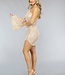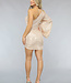 Dieses hübsche Kleid hat einen einzigen Ärmel und besteht aus winzigen roségoldenen Pailletten. Damit ist es definitiv für die Feiertage geeignet! Das Kleid hat einen Ärmel, der weit ausläuft. Der untere Teil des Kleides hat eine kleine Überlappung. An der Seite befindet sich ein Reißverschluss, so dass man leicht hineinkommt. Das Kleid hat eine weiche Innenseite, so dass es nicht durchscheint und man die Pailletten nicht spürt.