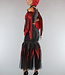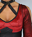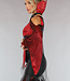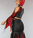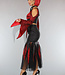 Dieses Kostüm besteht aus einem Oberteil und einem Rock. Das Oberteil ist eine Kombination aus einem Stoff in Lederoptik und einem Stoff in Satinoptik mit einem Drachenhautaufdruck. Das Oberteil hat offene Schultern und ausgestellte Netzärmel. Außerdem hat das Oberteil einen Reißverschluss an der Seite. Der Rock ist ebenfalls in Lederoptik gehalten und ist oben eng anliegend. Der untere Teil des Rocks ist ausgestellt und mit verschiedenen Stoffen überlagert. Auf der Rückseite des Rocks befindet sich ebenfalls ein Reißverschluss. Am Hals können Sie den mitgelieferten Stehkragen tragen.