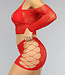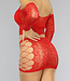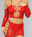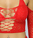 Dieses Set besteht aus einem Netzoberteil und einem Netzrock. Das Oberteil hat lange Ärmel und ist komplett mit Glitter bedeckt. Auf der Vorderseite zwischen der Brust ist ein Fischnetz Detail. Außerdem ist das Oberteil mit einem floralen Spitzenmuster versehen. Der Halsausschnitt ist weit, so dass das Oberteil schulterfrei getragen werden kann. Der Rock ist ebenfalls mit einem floralen Spitzenmuster versehen. Die Seiten des Rocks sind mit einem Fischnetz versehen. Der Rock ist außerdem komplett mit Glitzer überzogen.