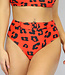 Rotes Maxi-Bikini-Unterteil mit hoher Taille und Leopardenmuster